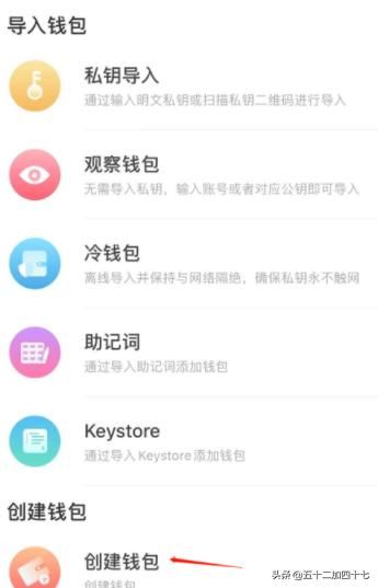 2、进入钱包后,在创建钱包和导入钱包中选择“创建钱包”