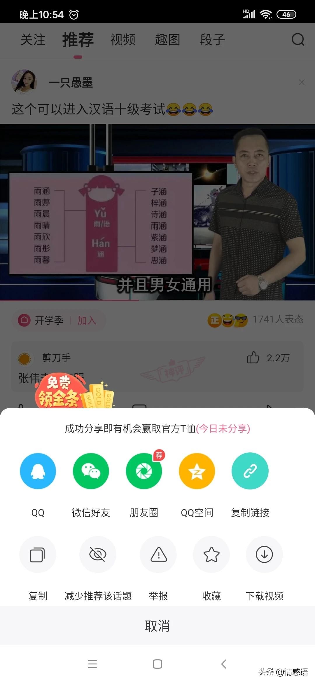 7、可分享到、微博、微信、QQ等,还可以下载搞笑视频保存。