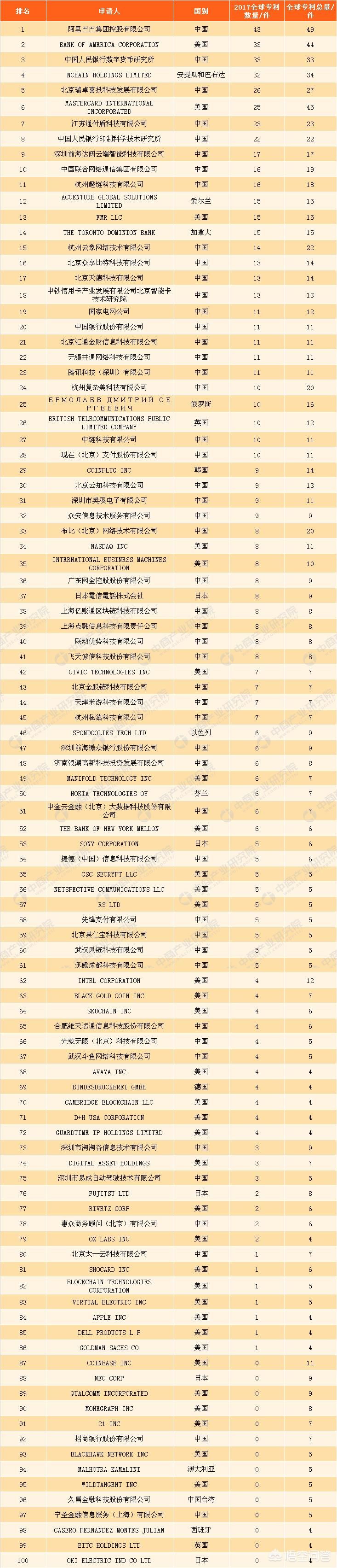 2017年全球区块链企业专利排行榜