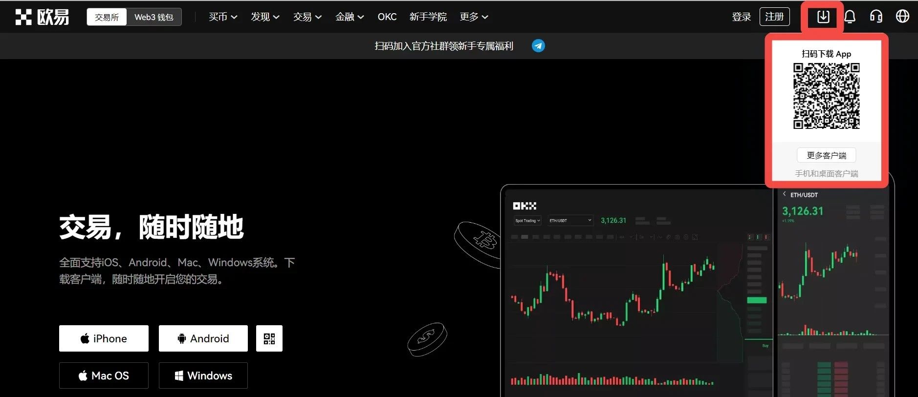 打开欧易官网,点击下载图标,用手机扫描出现的二维码(建议用浏览器进行扫码,微信扫码可能会出现网页停止访问的情况),点击【本地下载】,然后根据提示完成下载、安装。