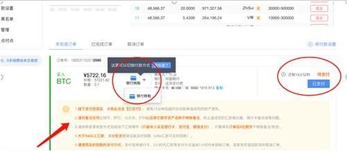 3、点击“未完成订单”,可查看买入订单明细,可切换选择支付方式(商家可自由设置开启或关闭支付宝、微信支付,银行卡默认必须打开),再根据收款人信息,进行支付,支付完成后务必点击“已支付”,等待商家放币即可;