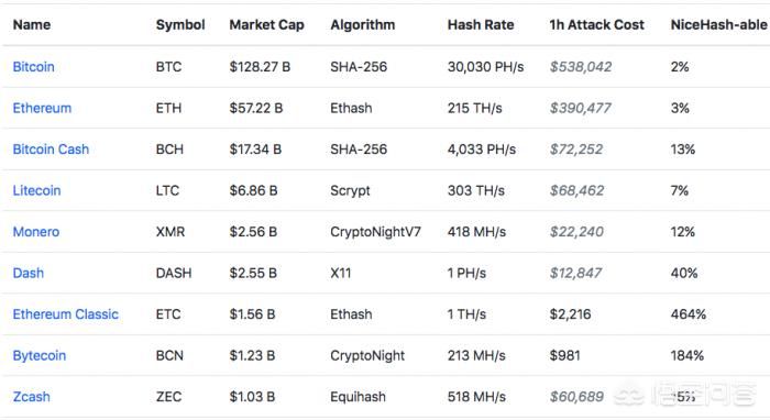 而这个结果是令人吃惊的!根据网站计算,攻击Bitcoin Gold一小时的费用仅为2990美元,而攻击Ethereum Classic一小时的费用仅为2216美元,而攻击Bytecoin费用为1124美元,攻击ZClasicc的费用为3345美元。而那些鲜为人知的加密货币,成本在1美元至500美元之间。