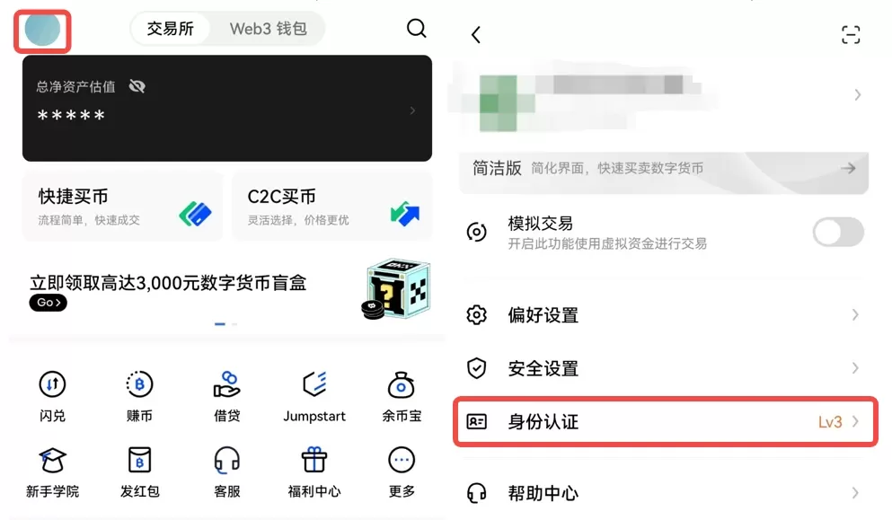 1、KYC认证:为保障您的交易安全,需要您至少完成手机号验证及初级用户认证。您可以登录欧易APP,点击首页左上角头像,进入个人中心,点击【身份认证】进行认证。