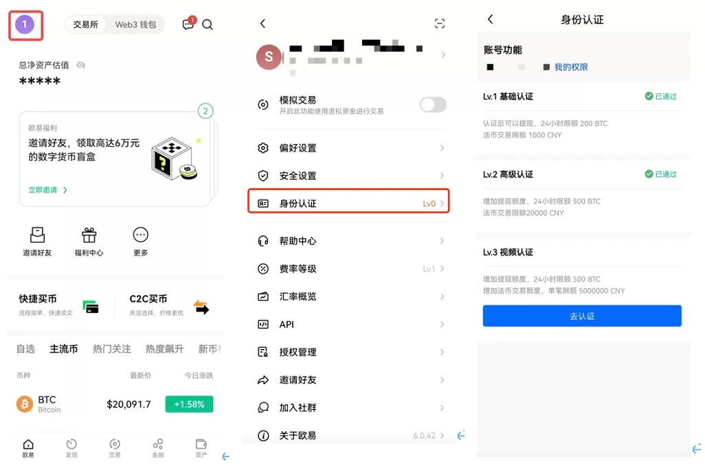 注:认证级别越高,提现额度和法币交易额度更高,在进行买/卖币交易时,也更容易匹配到更优质的商家和更优惠的价格。