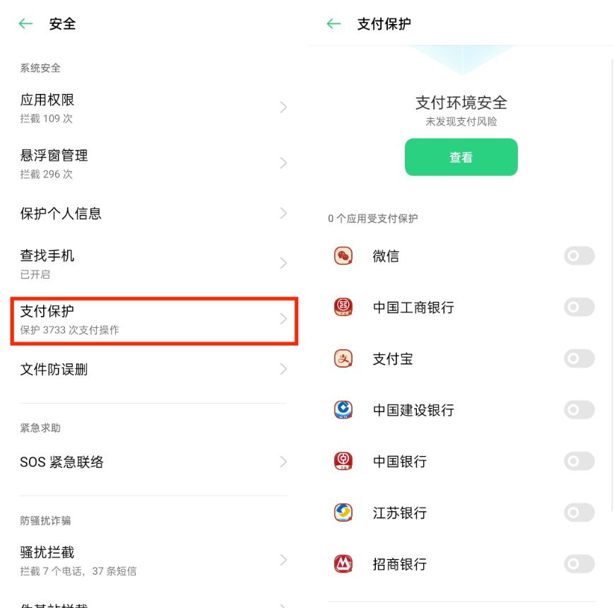 打开OPPO手机设置,手机管家(自带)—【支付保护】,关闭所有软件的保护,在成功下载安装欧易App之后再打开保护。