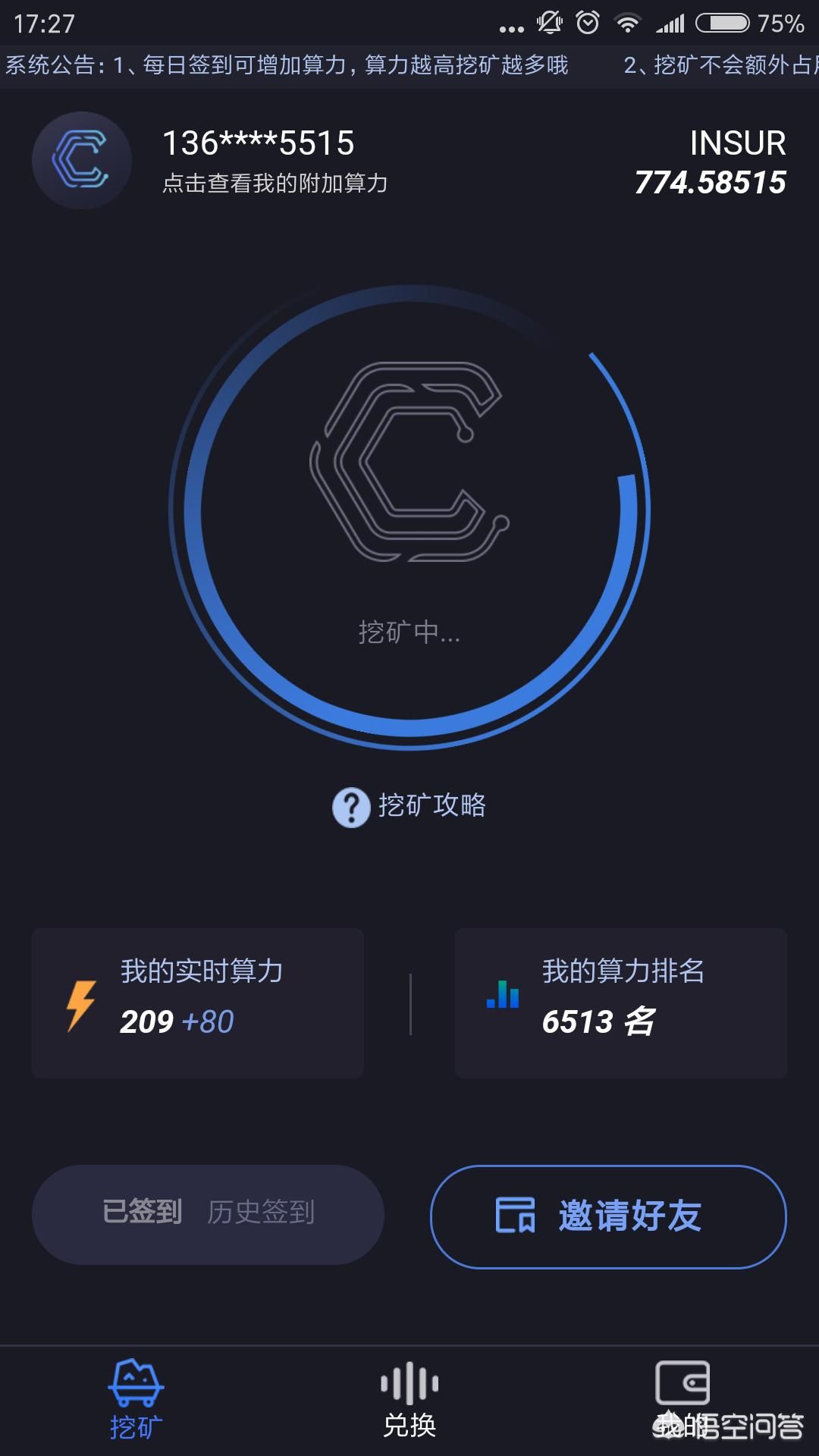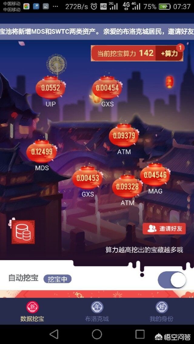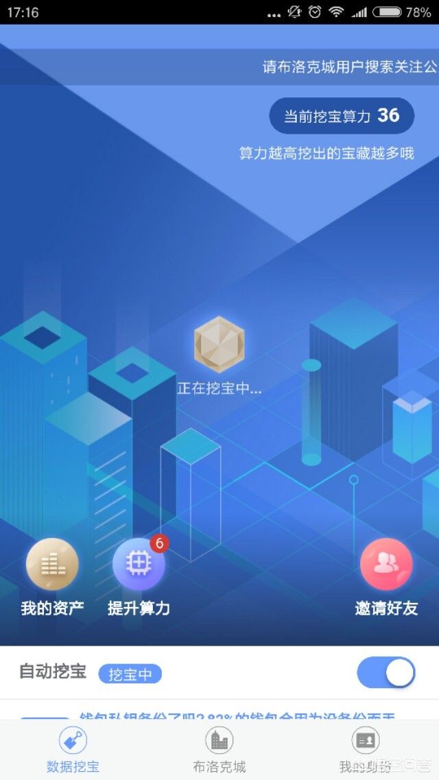 公信宝的布洛克城,认证特别多,界面进行过更换。基本七八小时挖一点点出来,想要提高算力就得把脸、支付宝、学信等很多信息都开放了,三分基本参与了下,做的认证较少。也是手机APP就可以参与。