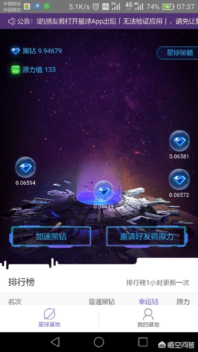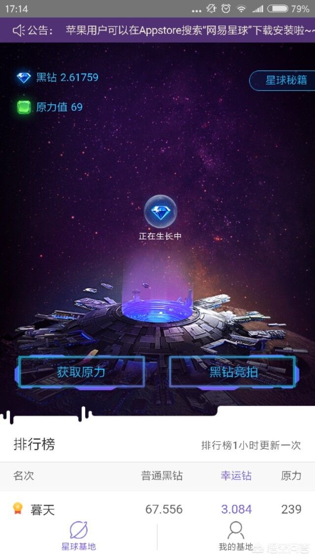 这个很多朋友比较熟悉了,网易出的一款区域链产品。有一段时间了,产物是黑钻,算力来决定挖矿能力,还有幸运钻,但三分表示从未见过,界面比较星际,矿口入星舰的入口。也是手机APP就可以参与。
