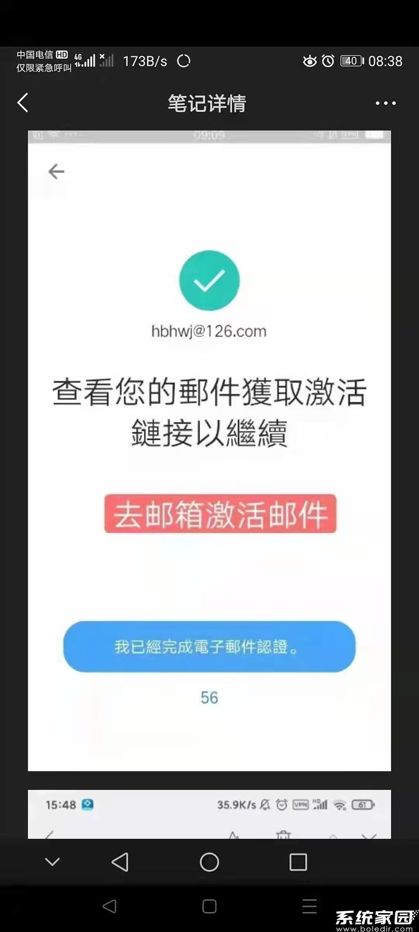 第五步、提交后会提示到电子邮箱去【查看您的邮件获取激活链接以继续】