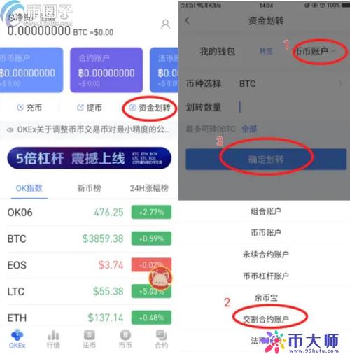 1.首先将我们的数字资产从资金账户划转到交易账户,如已完成则无须进行额外划转操作。