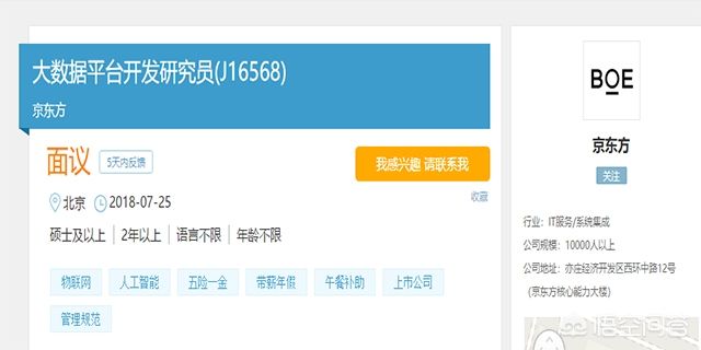 做为合肥领先的科技企业--京东方科技集团俨然成为合肥市规划领先产业集群的龙头企业,对于大数据和人工智能的人才需求量更是迫在眉睫。