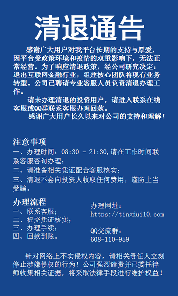 更多清退兑付的相关信息,请广大投资人及时联系客服咨询了解。