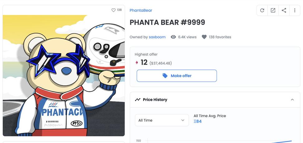 PhantaBear #9999以148ETH售出!周杰伦助力交易量冲上第一