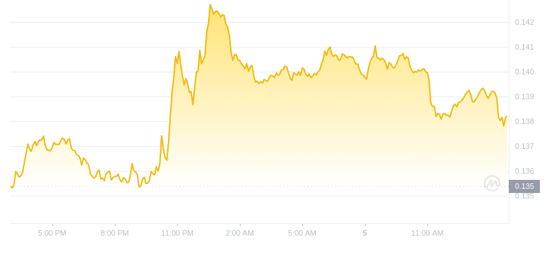 今日上午 2 点,The Graph (GRT) 的价格为 0.138 美元,过去 24 小时内上涨了 2.14%。交易量为 3,278 万美元,流通市值为 13.19 亿美元。