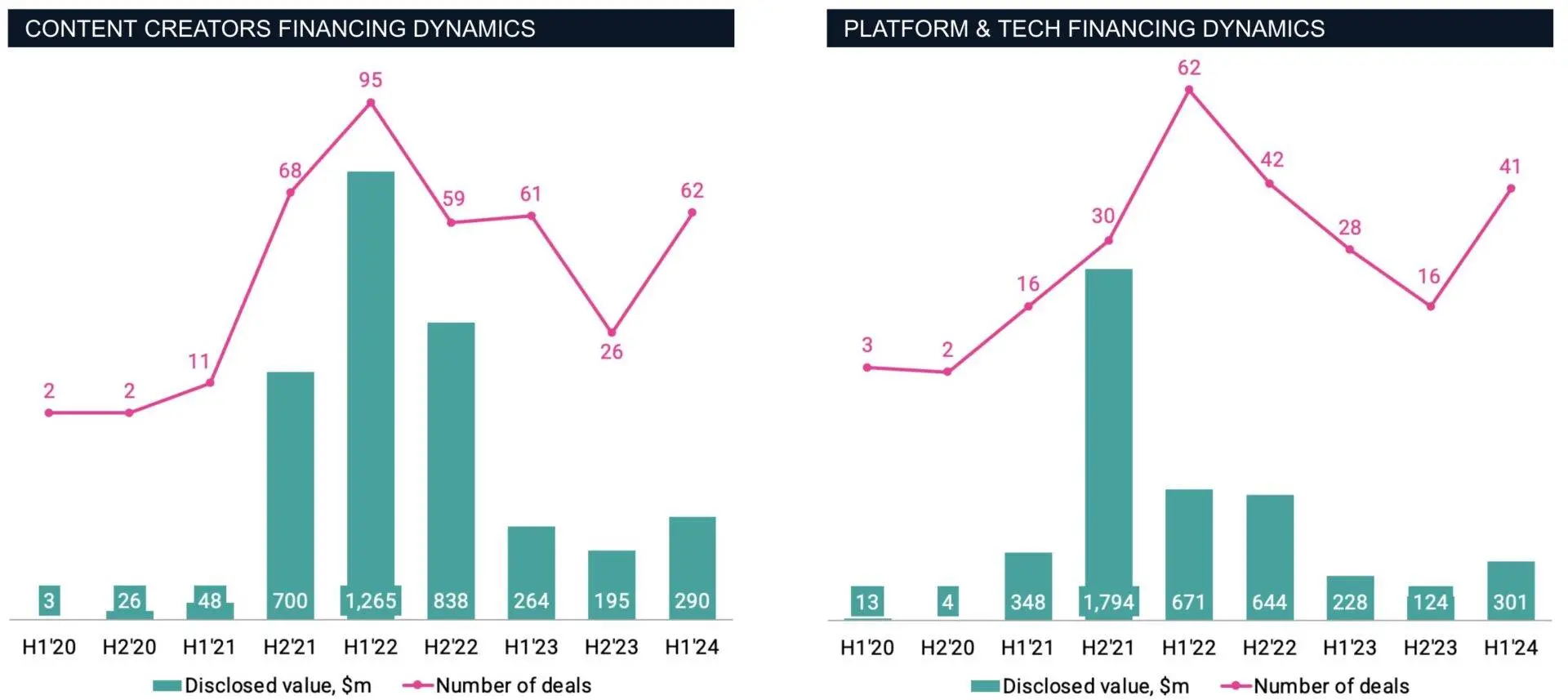 内容为主的投资优势:内容创作者持续吸引比平台和科技公司更多的资金,并且在 Web3 领域中实现了最大的退出。