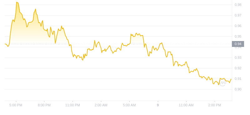 截至 2024 年 9 月 9 日 15:00,Sui (SUI) 的价格为 0.9081 美元,24 小时交易量为 382,347,683 美元。在过去 24 小时内,SUI 的价格下跌了 3.12%。