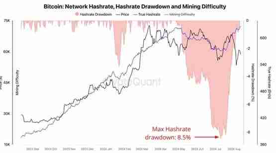 CryptoQuant数据显示,比特币全网算力在8月12日创下新高,达到627EH/s,从7月初时的颓势中恢复过来。