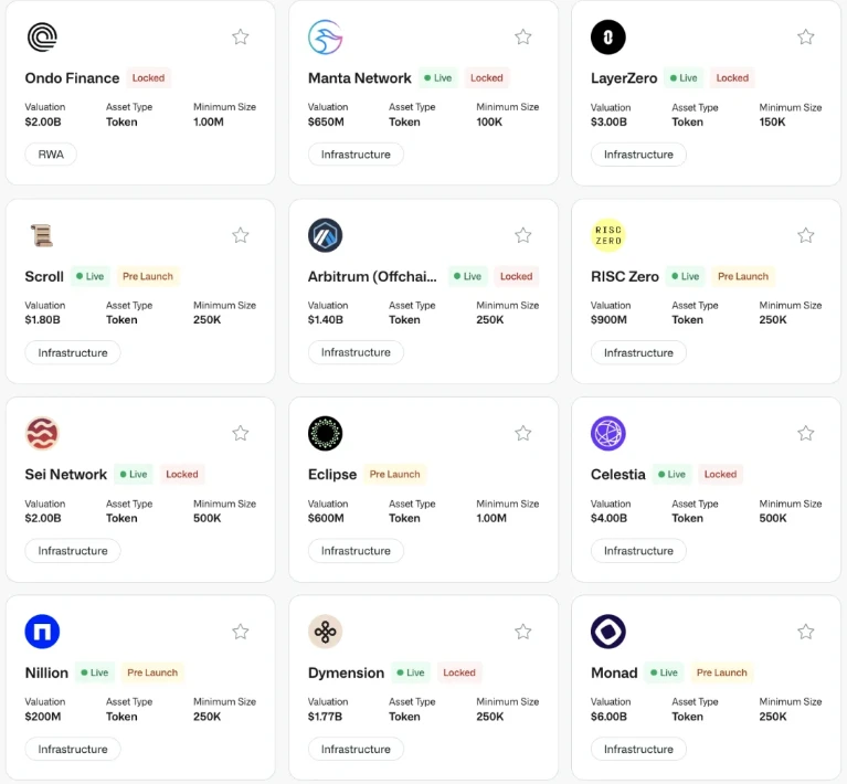 二级OTC(场外交易)市场是一个私人交易空间,允许买卖双方在公开交易所之外直接协商和执行代币、股权或投资合约(如 SAFT,未来代币简单协议)等资产的交易。由于各种原因,二级OTC市场上市的大多数资产无法在币安或 OKX 等常规交易所交易。