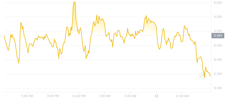 截至2024年9月13日14时,Internet Computer (ICP)的价格为8.34美元,过去24小时内的交易量为7670万美元。