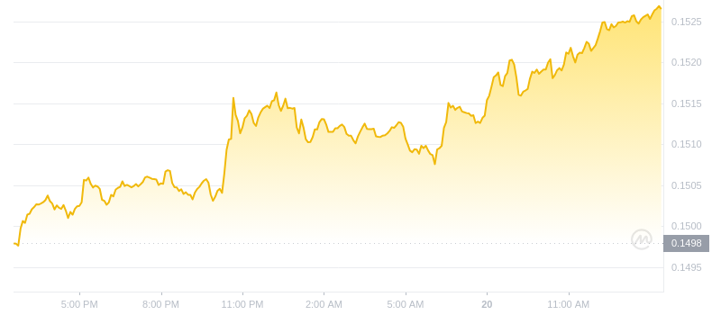 截至2024年9月20日14:00,TRX的价格为0.15262574208494美元,24小时交易量为306,095,397.02619美元。过去24小时,TRX价格上涨了1.98325774%。