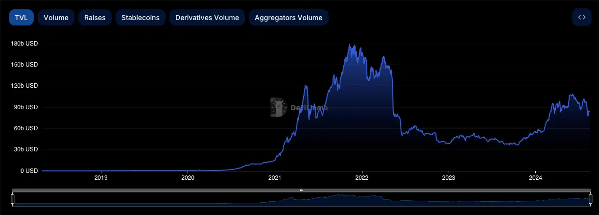 在 2021 年的 DeFi 夏季,DeFi 的总锁仓量 (TVL) 实现了显著增长