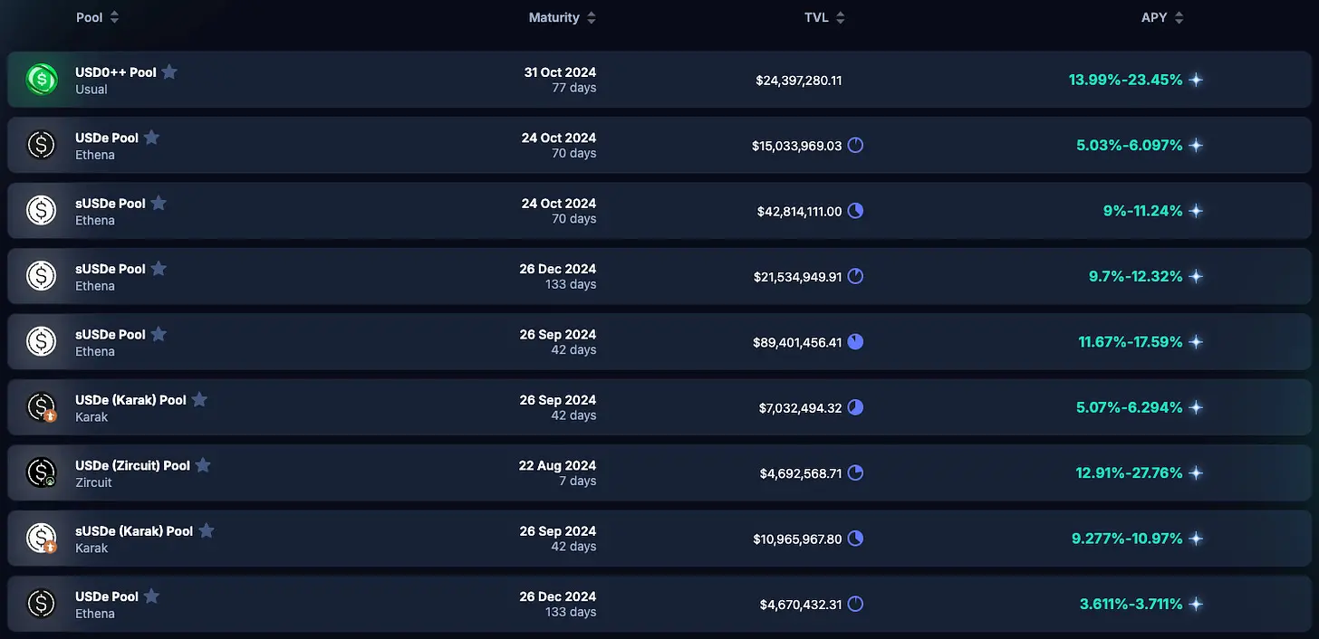 Pendle 协议上的稳定币年收益率 (APY),来源:Pendle