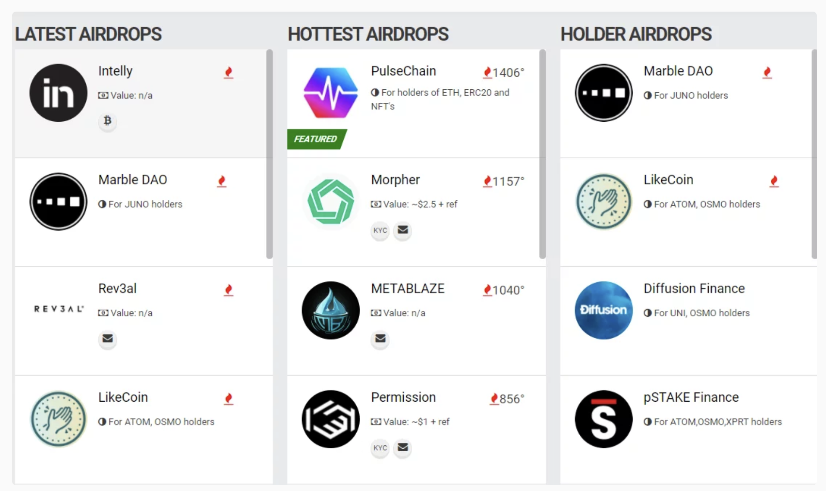 在top crypto airdrops部分,您可以查看当月最好的加密货币空投。在新的一个月开始时,将出现一个新的列表。