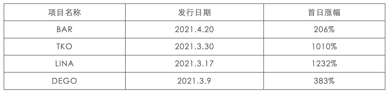 另外,大部分的IEO 项目交易所都会与项目发行方讨论一个较低的价格在公开市场发行少量的项目币,加上代币经济的设计,让IEO 新币在上市时流通量极少,导致惊人的涨幅