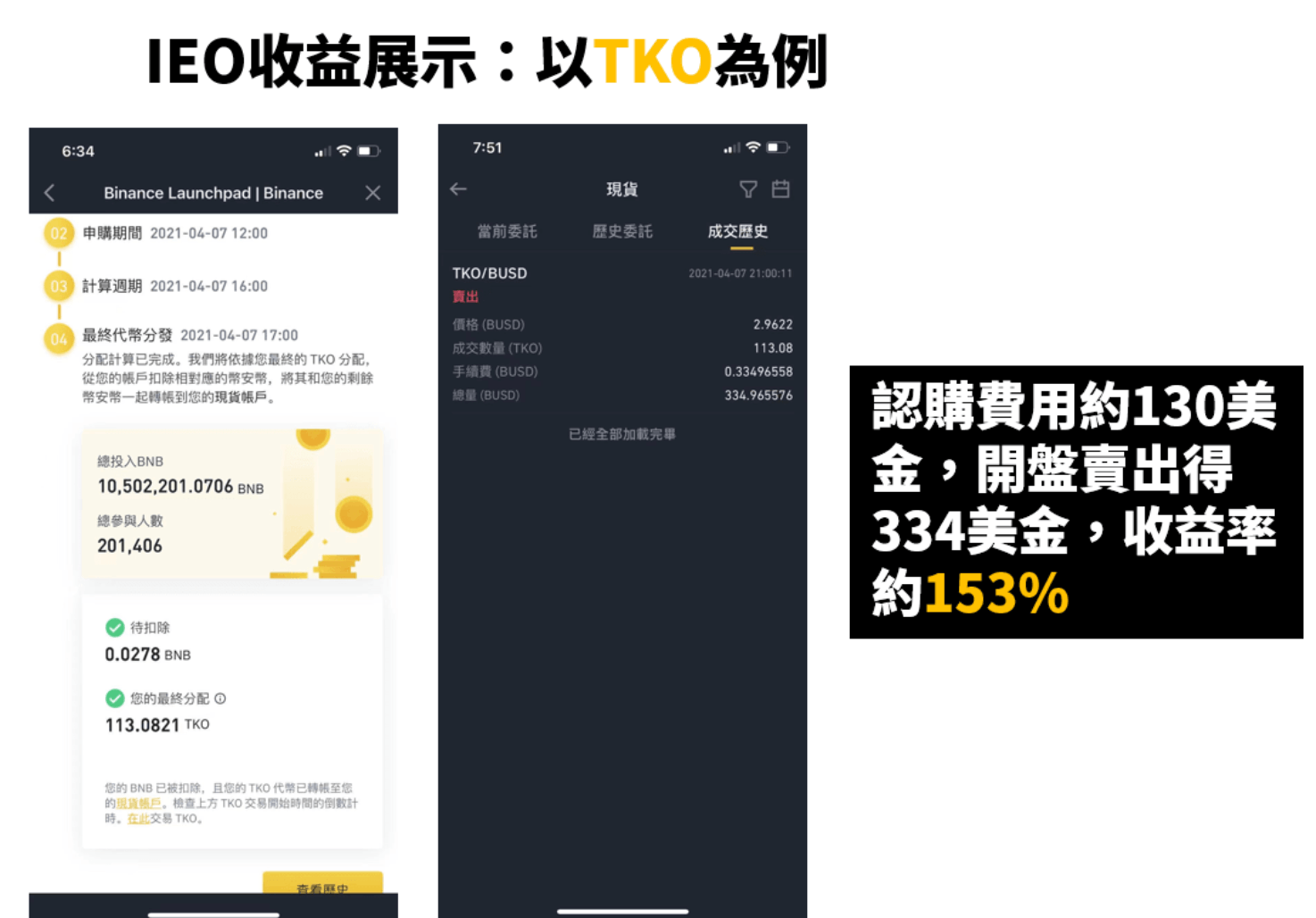 IEO 通常由 币安Binance这样具公信力的交易所来发布,在上架前会经过严格的审核,不管是在上市涨幅还是安全性上都会比STO、IDO 来的高上许多。