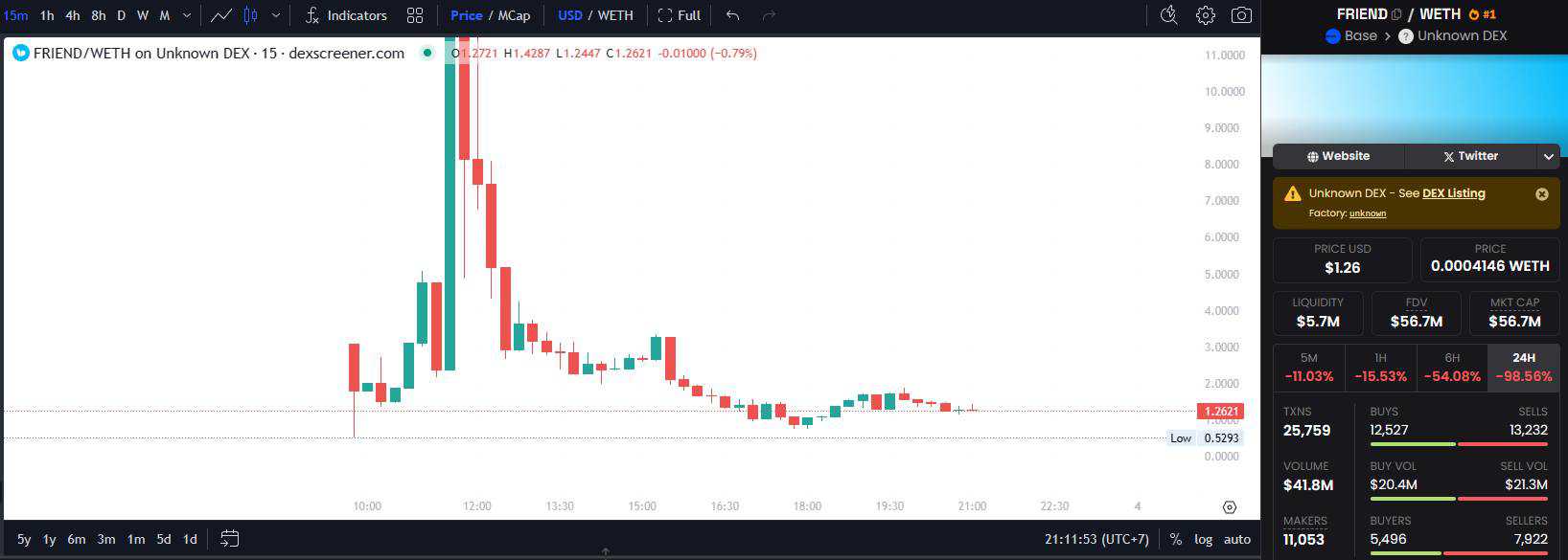 DexScreener 2024年5月3日 09:00 PM FRIEND/WETH 交易对 1500 万图表