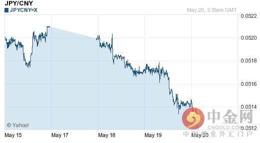 银行名称货币兑换中间价现汇买入价现汇卖出价现钞买入价基准汇率更新时间中国银行日元对人民币0.05080.051130.051490.049550.051492015/5/20 11:04建设银行日元对人民币—0.051110.051510.04946—2015/5/20 11:09农业银行日元对人民币—0.051130.051490.049550.051312015/5/20 11:07广发银行日元对人民币0.051310.05110.051510.04949—2015/5/20 11:07华夏银行日元对人民币0.051320.051110.051520.05004—2015/5/20 11:00浙商银行日元对人民币0.051310.05110.051510.04951—2015/5/20 11:10日元对人民币汇率走势图:(一周)