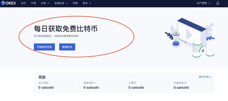 目前OKEx有新用户活动,首次购买200元以上的数字货币,即可获得价值20元比特币。如上图。还有免费比特币活动,每日学习区块链知识即可每日获取免费比特币。