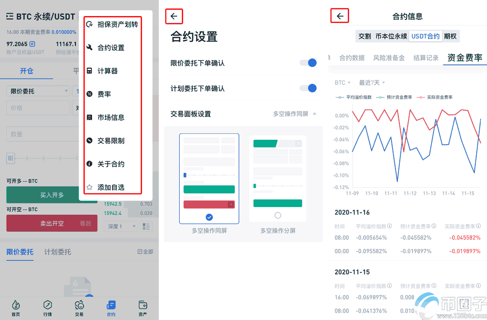 8. 点击界面右上角的“···”即可进行“合约设置”和查看更多“合约信息”。