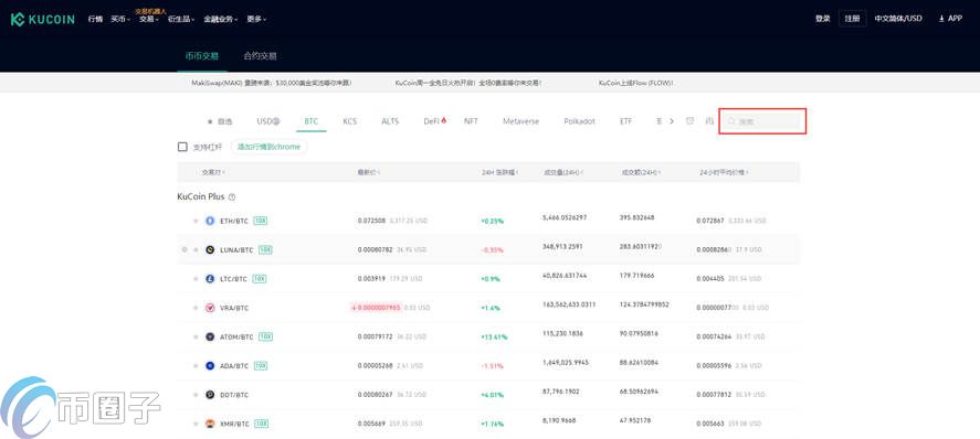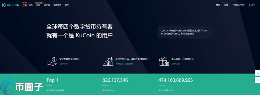 第一步:登陆KuCoin官网,如果你还没有账号可以点此注册新账号,进入行情页面