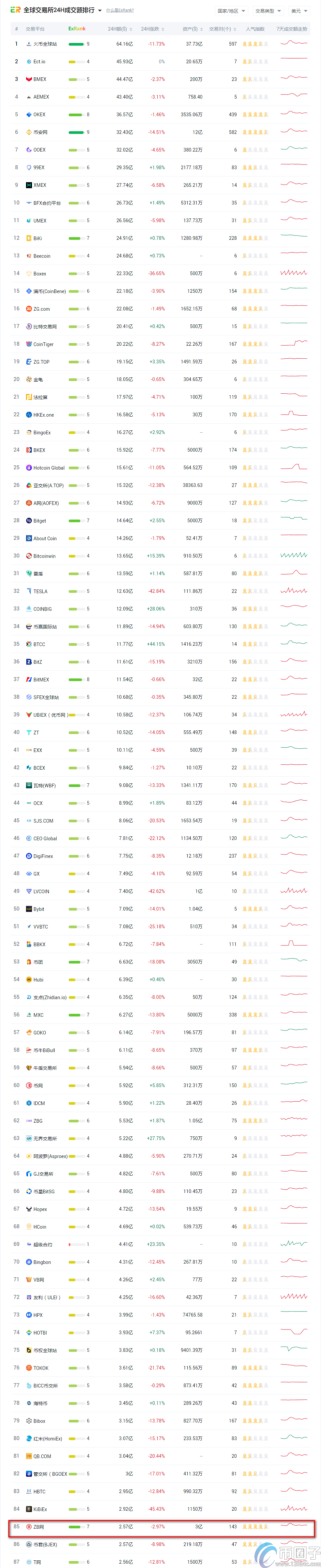 按照24小时成交额来排名,中币交易所排第85名,其24小时成交额为2.57亿美元