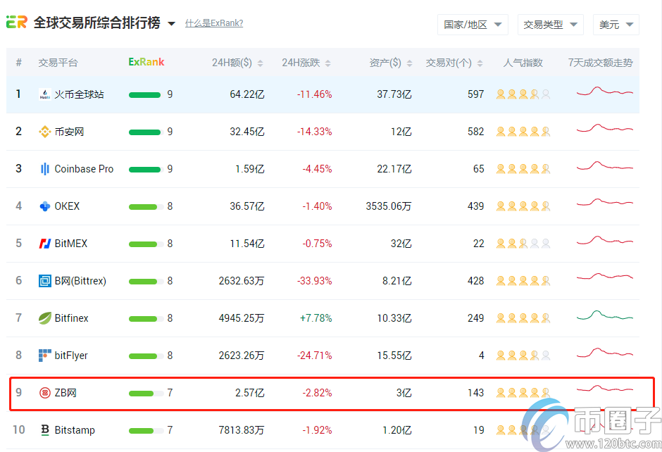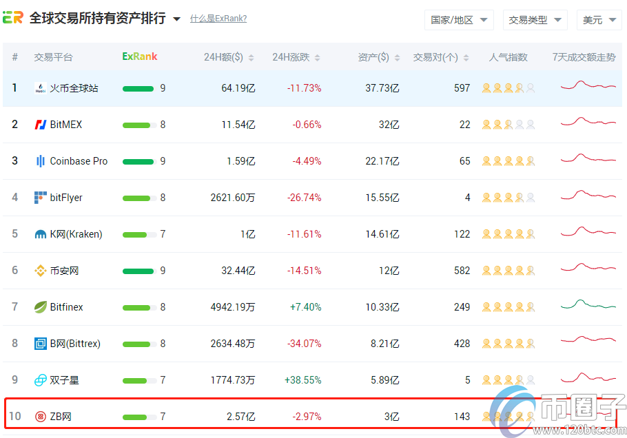 按照资产来排名,中币交易所排第10名,其资产为3亿美元