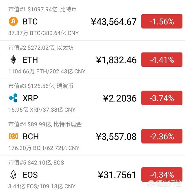我们先看当前数字货币市值排名前五的币种,这五个按照排名先后依次是比特币BTC、以太坊ETH、瑞波币XRP、比特现金BCH和EOS。