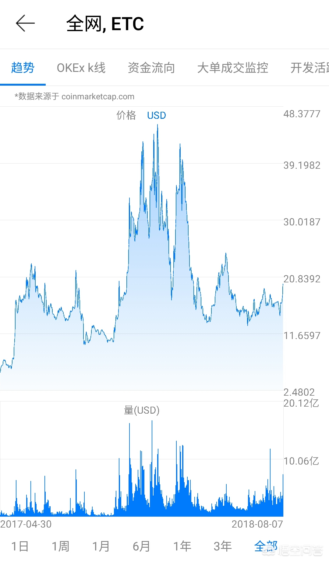 以太经典现在市值不到12亿美元,知识排名第12。总量1亿枚,流通1亿枚。比特币2万美元的巅峰时期以太经典的最高价才260不到,说是黑马不可能但是前景还是不错的,基础链最后都是靠自己生态中的其他项目维持。