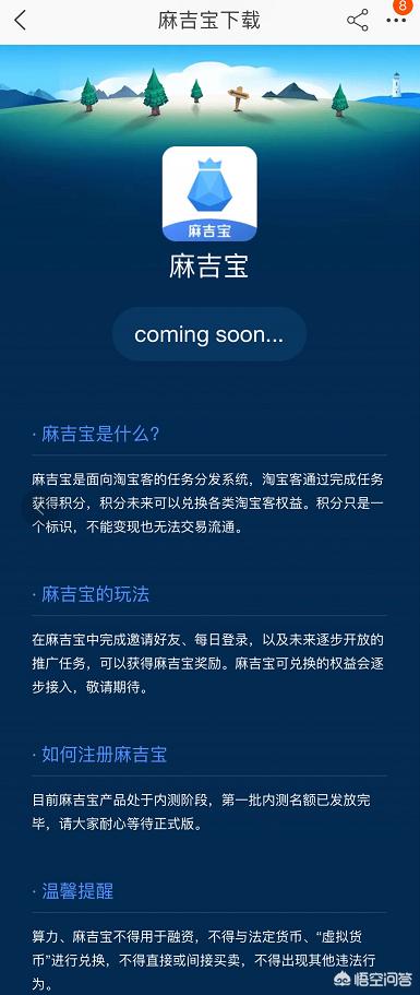 阿里的宣传团队已经表示麻吉宝并没有使用区块链技术。只是一个淘客任务分发平台。既然已经明确表示自己没有使用区块链技术,估计很快就会再次上线的。
