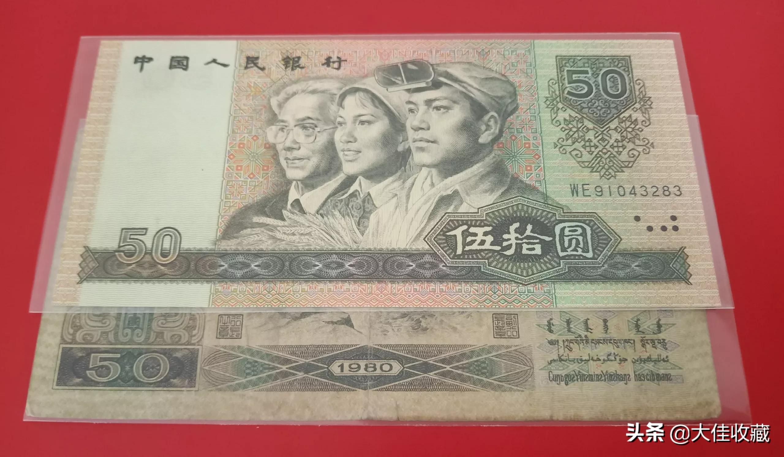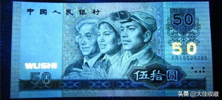 三识别,就是根据9050纸币的防伪标识如左边的工人形象的白水印,右边的金属线等。但从图片上是看不出来的,应需对光观察这些是否清晰。