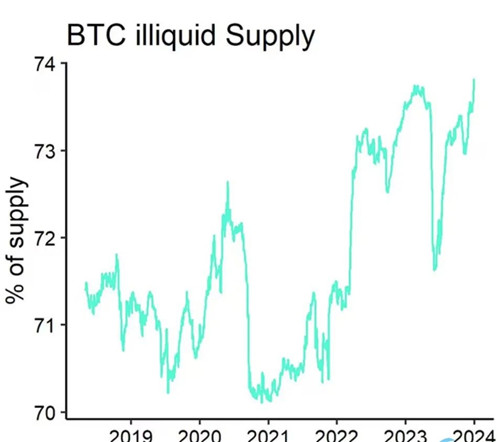 比特币非流动性供应量达总量74%