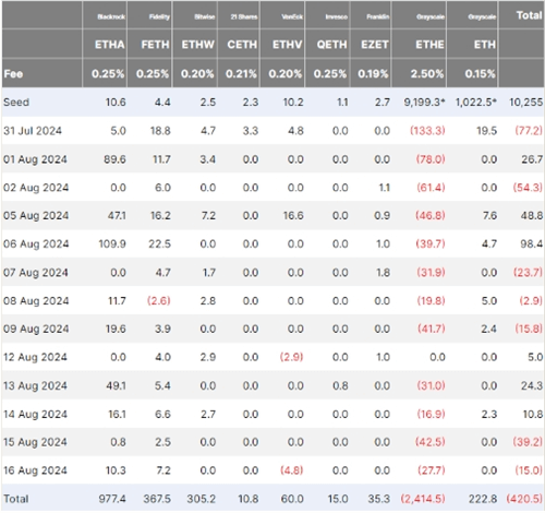 然而,现实却截然相反。Farside Investors的数据揭示了可能的原因:自ETF推出以来,美国ETH ETF累计净流出资金高达4.205亿美元,这一巨额的抛售压力直接对以太币价格构成了重压。投资者原本期待ETF的推出能带来大量新资金流入,从而推高币价,但实际情况却截然相反。