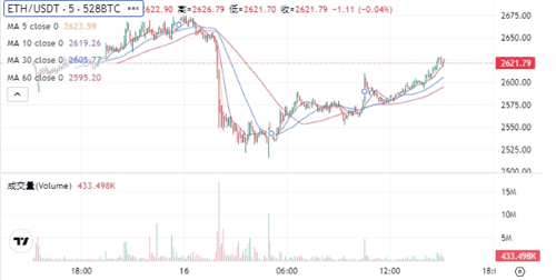 8月11日,以太坊以2559.07美元开盘,在交易日内最高触及2641.47美元,最低则下跌至2555.05美元。最终,以太坊以2601.49美元的价格收盘,全天交易额为54.88亿美元,市值则维持在3125.66亿美元。
