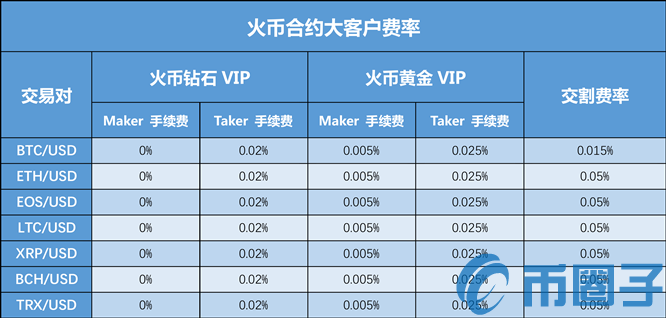 2. 优惠费率:达到标准的火币钻石和火币黄金VIP可享受火币现货和合约的特殊费率
