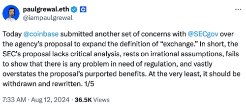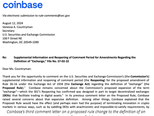 8月13日最新消息报道,加密货币交易所Coinbase近日向美国证券交易委员会(SEC)提交了第三封评论信,就SEC关于国家证券交易所定义的拟议修改提出强烈质疑。Coinbase首席法律官Paul Grewal在信中明确指出,SEC在缺乏足够信息的情况下进行成本效益分析,这一做法既不合理也不符合法律程序。