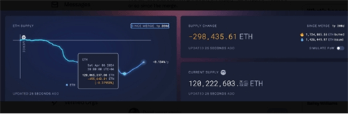加密货币交易员及Into the Cryptoverse创始人Benjamin Cowen在7月19日的分析中详细阐述了这一观点。他指出:“自今年4月以来,以太坊的供应量每月大约增加6万枚。若此趋势持续,到今年12月,供应量将恢复到合并前的水平。”这里所指的合并,即以太坊网络从工作量证明(PoW)向权益证明(PoS)的过渡,该事件使得以太坊在合并后转变为通货紧缩状态,至2024年4月,其供应量减少了约455,000枚ETH。然而,自那之后,供应量又回升了约150,000枚ETH。Cowen进一步警告,若增长势头不减,以太坊的供应量可能会恢复到合并前两年的水平。