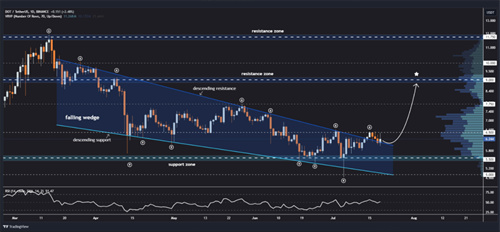 著名加密专家乔纳森·卡特(Jonathan Carter)最近向波卡多(Polkadot)提出了一个令人鼓舞的预测。卡特的研究集中在一个显著的技术进步上:最近,DOT爆发了一个下降的楔形模式,这种配置有时被视为一个积极的指标。