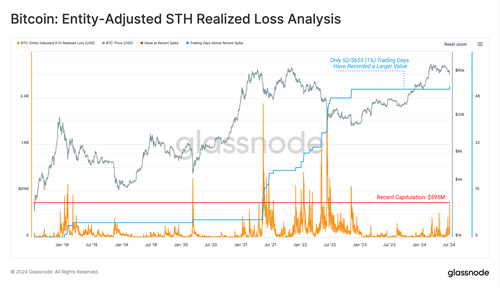 根据Glassnode最新的每周报告,在加密货币历史上,只有不到1%的交易日,短期持有者的损失高于最近的事件。