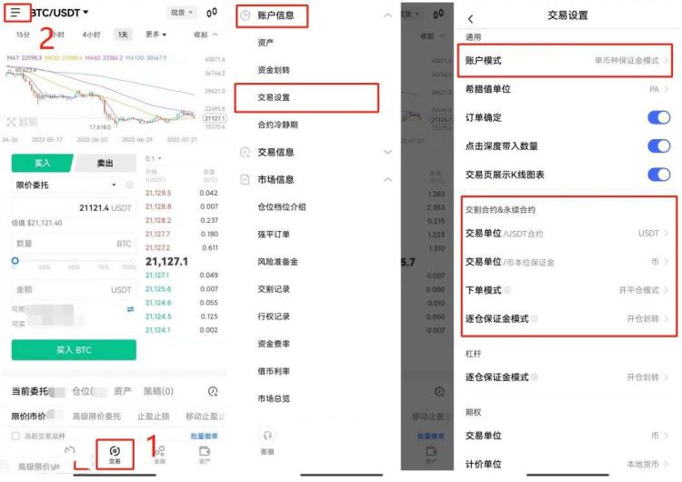 1)想要进行合约交易需要将账户模式开通并设置为单币种保证金模式或跨币种保证金模式。