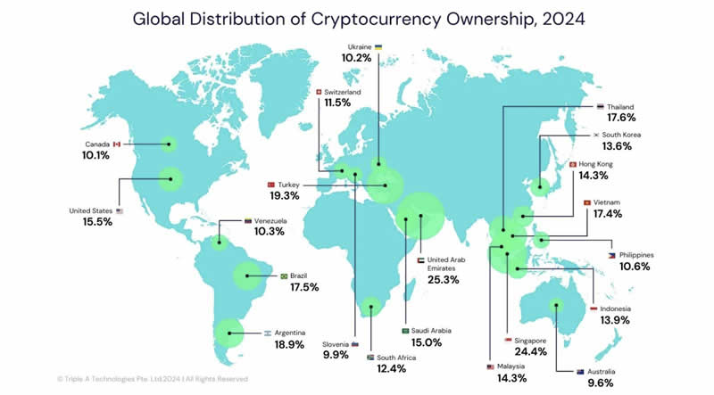 距离 11 月 5 日的美国总统大选只剩不到一周,加密用户群体在本次大选中占有一席之地。根据Triple A 数据显示:2024 年美国持有加密货币的群众比例为15.5%,代表约有5100 万美国人持有,而这数字代表了比非裔美国人总人口数更多( 4110 万),仅输给拉丁裔美国人( 约5700万)。