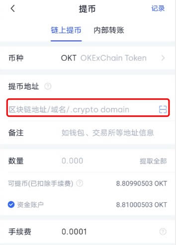 假如你的币在交易所(以欧易OKEx为例,其余类似),直接将上述地址复制到提币地址栏,提交确认即可。其余币种操作步骤一致。